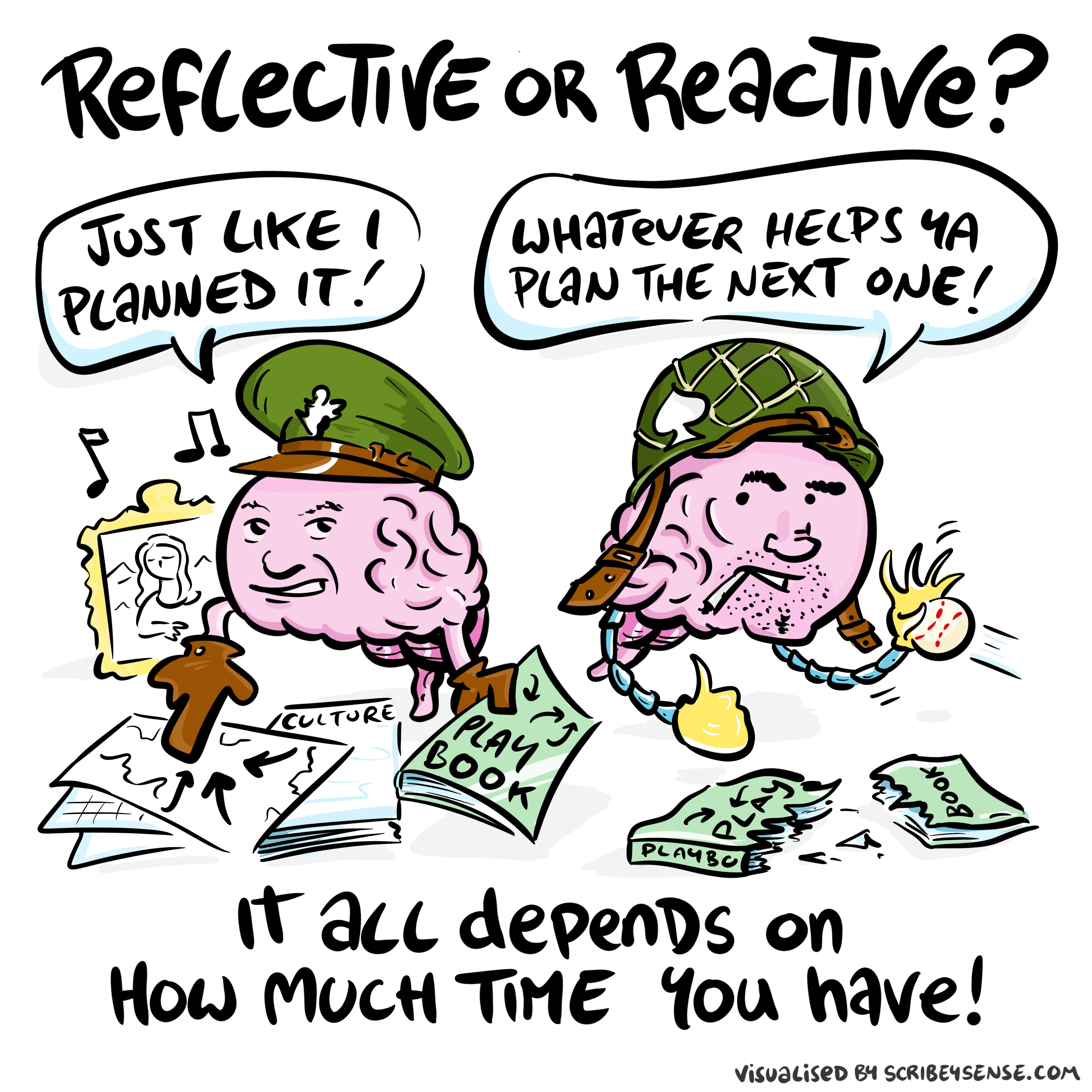 Figure: This is the drawing Dan was inspired to create for Chapter 7. Reflective and reactive approaches are driven by how much time is available for decision making.