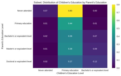 Beyond geography, the dynamics of one’s household shape their educational destiny. You might assume that parents who never went to school would see their children follow the same path, but the data reveals something contrary. These parents are ensuring that their children get at least some form of education, as a majority of their children have attained at least primary and secondary education. However, they struggle to advance to higher education. The barrier isn't getting them to school but getting them through it. In contrast, children of university-educated parents are far more likely to reach similar academic heights.